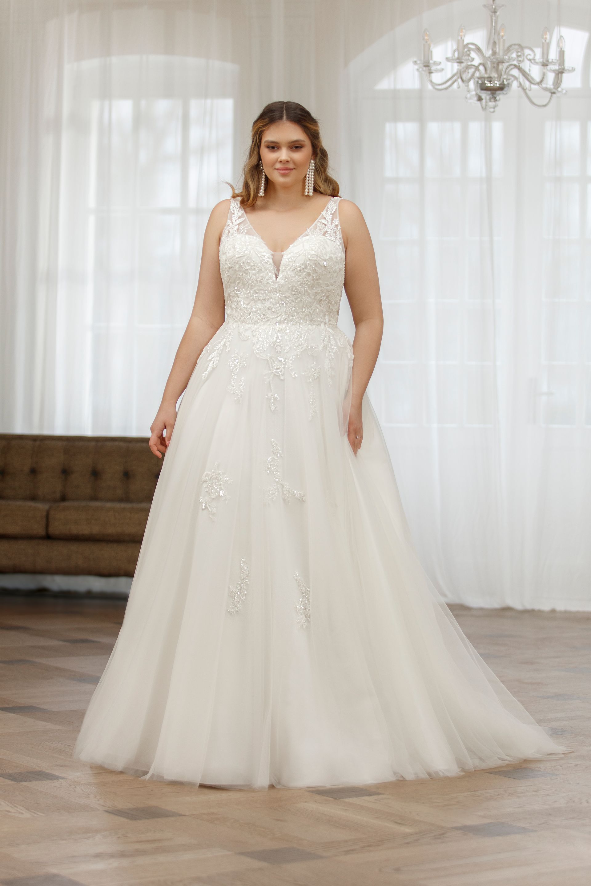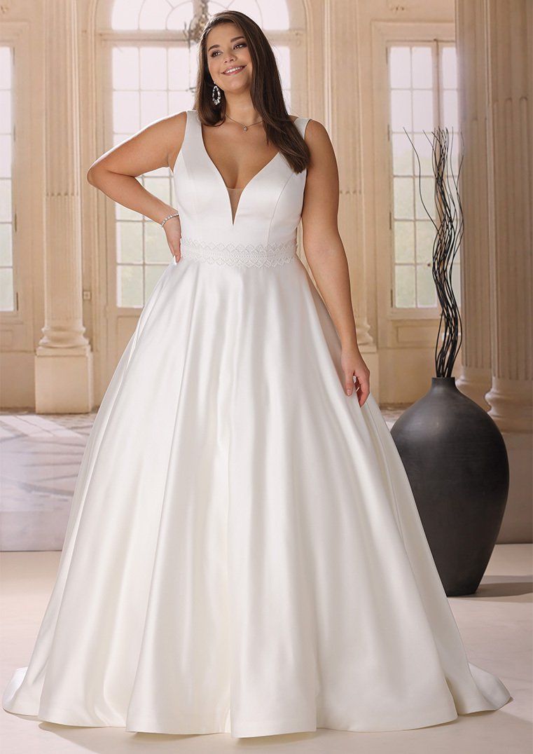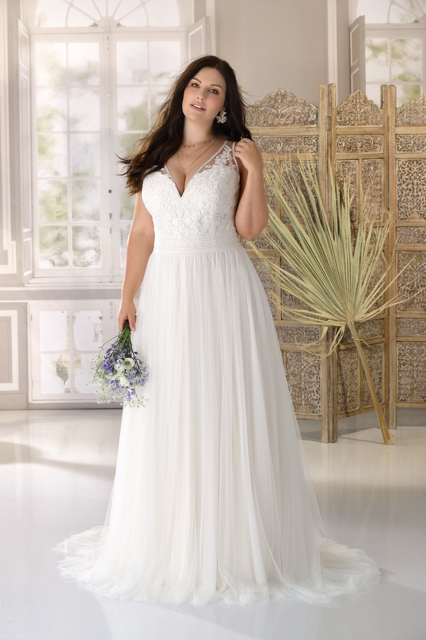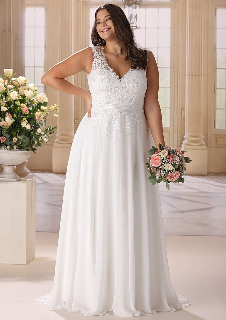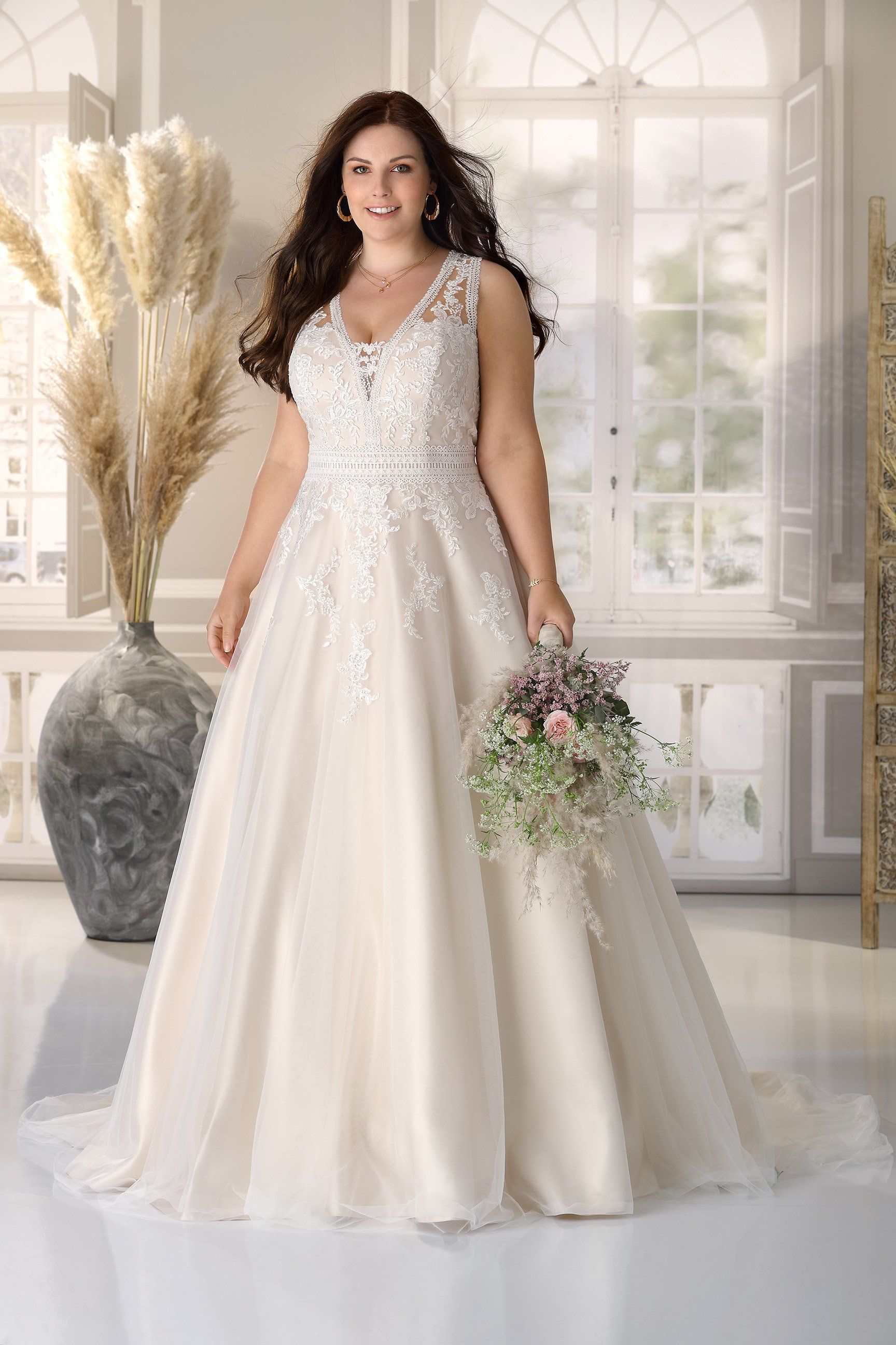 Ein elegantes Brautkleid in perfekter Passform, in klassischer A - Linie oder auch Meerjungfrau. Mit vielerlei Effekten und einem einzigartigen Look schmeichelt dieses Kleid der weiblichen Figur. Setzen Sie sich in Szene. Bei uns finden Sie eine umfangreiche Auswahl bis Größe 60.