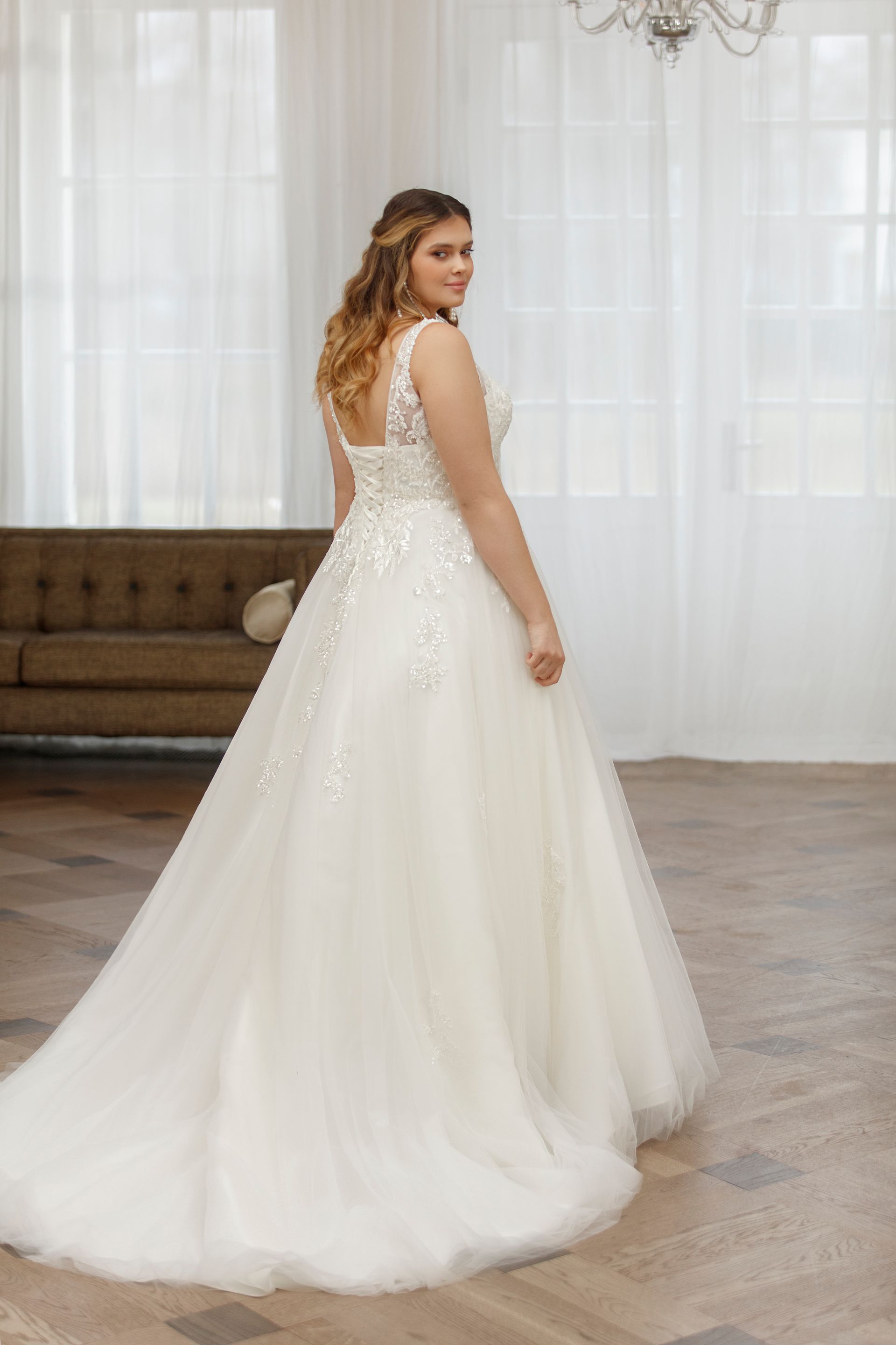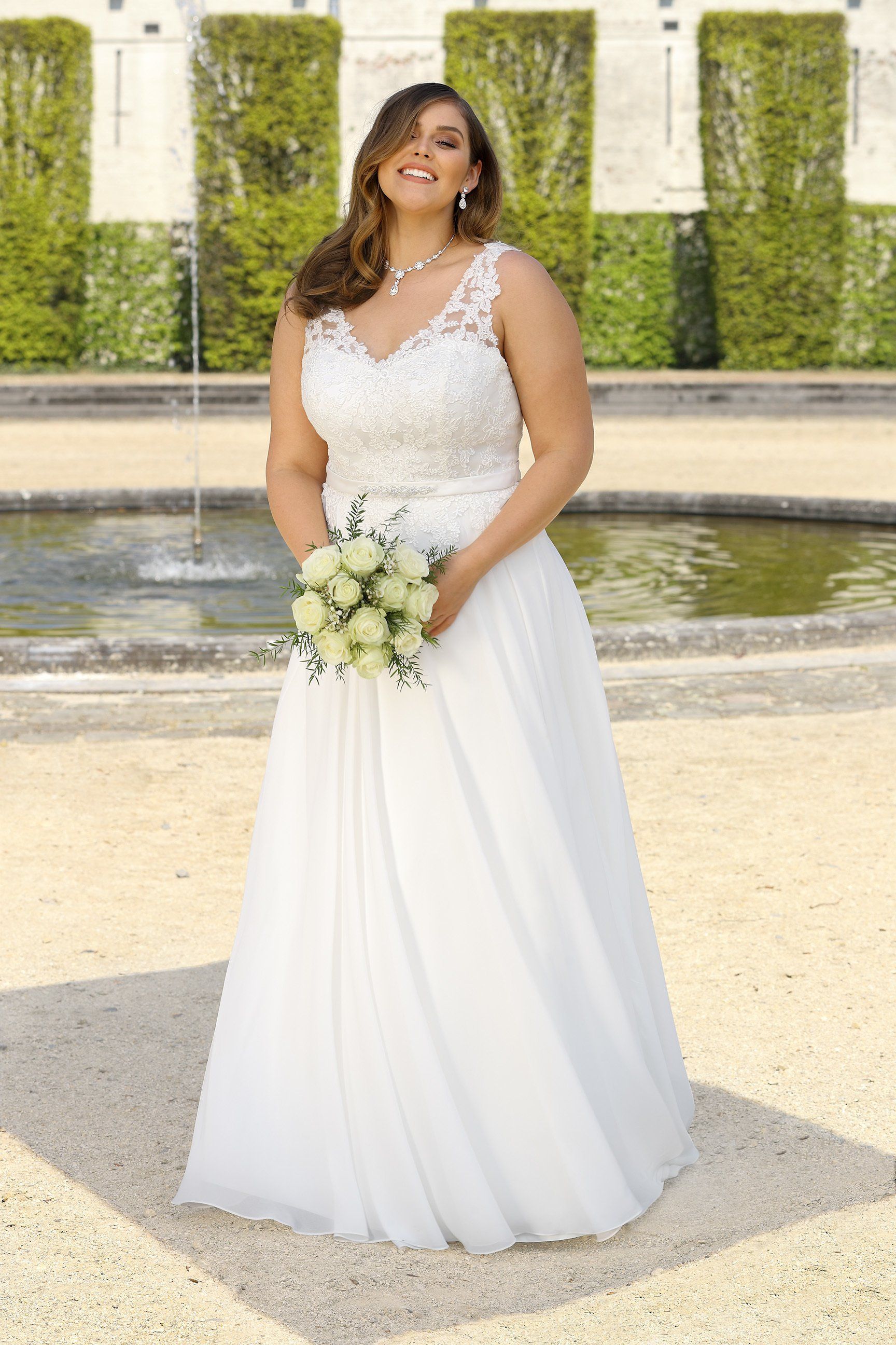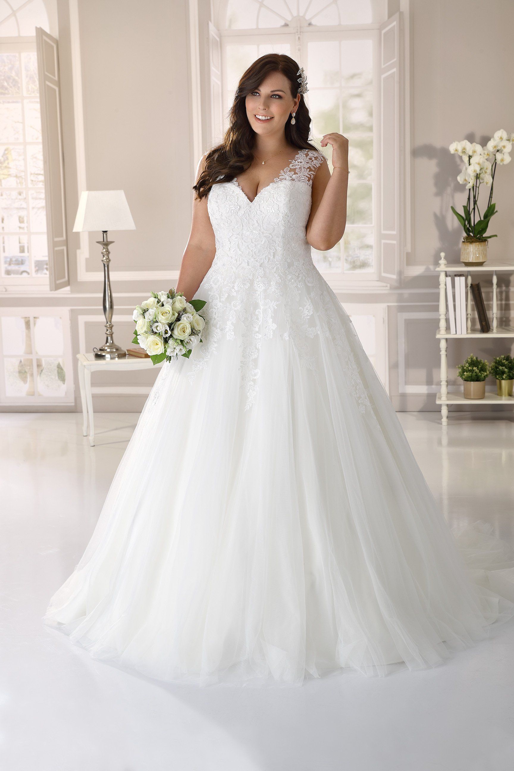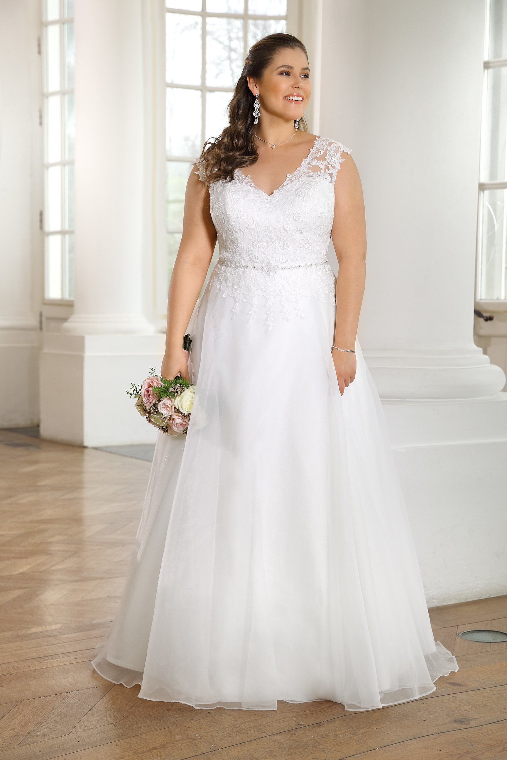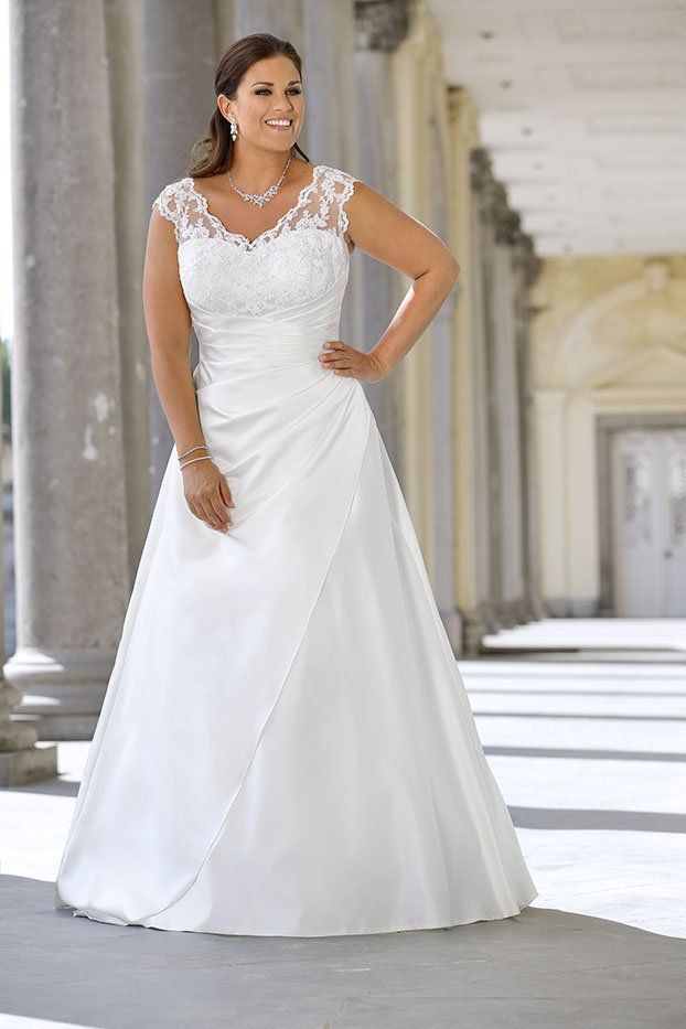 Ein elegantes Brautkleid in perfekter Passform, in klassischer A - Linie oder auch Meerjungfrau. Mit vielerlei Effekten und einem einzigartigen Look schmeichelt dieses Kleid der weiblichen Figur. Setzen Sie sich in Szene. Bei uns finden Sie eine umfangreiche Auswahl bis Größe 60.