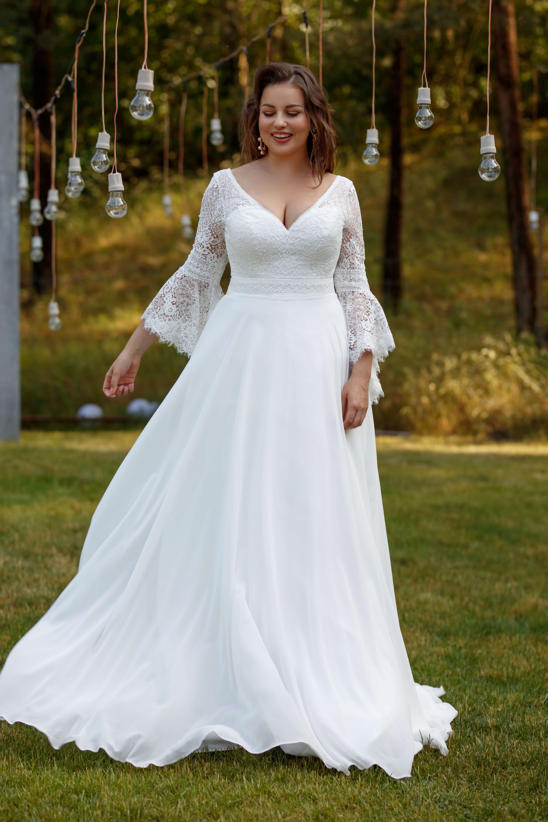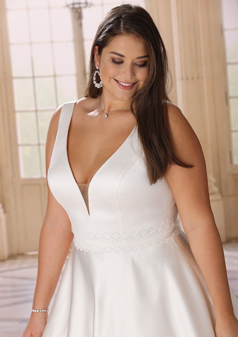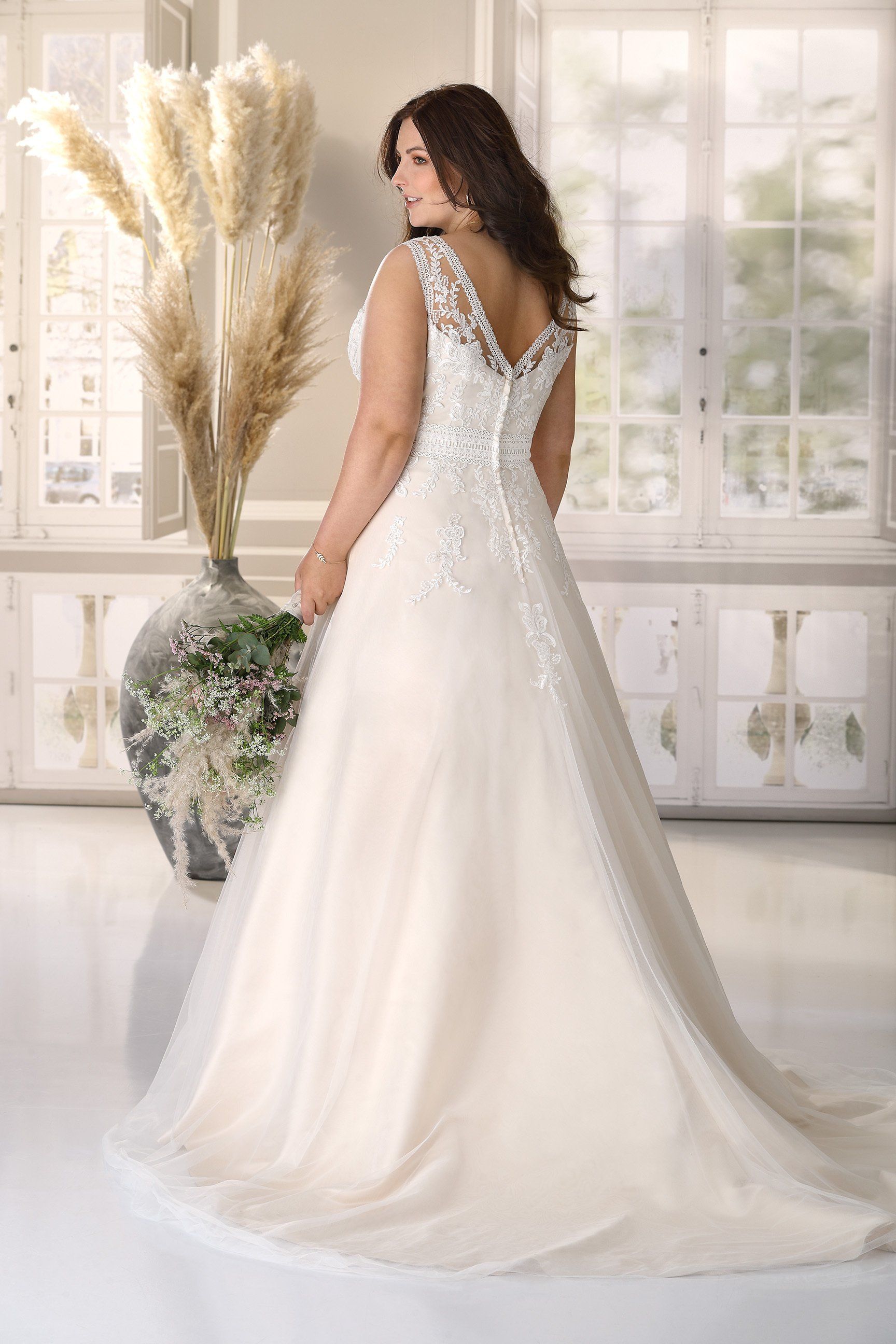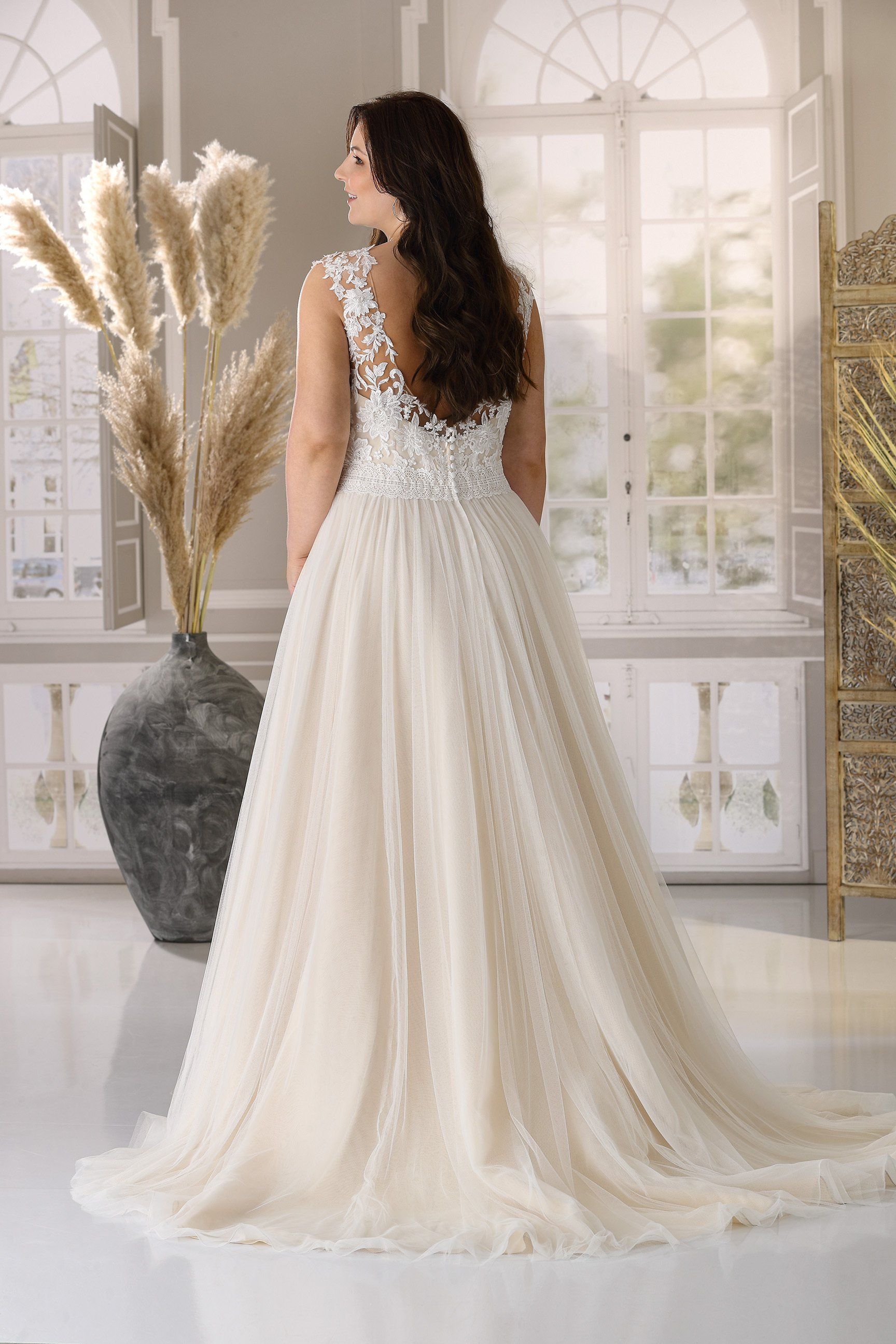 Ein elegantes Brautkleid in perfekter Passform, in klassischer A - Linie oder auch Meerjungfrau. Mit vielerlei Effekten und einem einzigartigen Look schmeichelt dieses Kleid der weiblichen Figur. Setzen Sie sich in Szene. Bei uns finden Sie eine umfangreiche Auswahl bis Größe 60.
