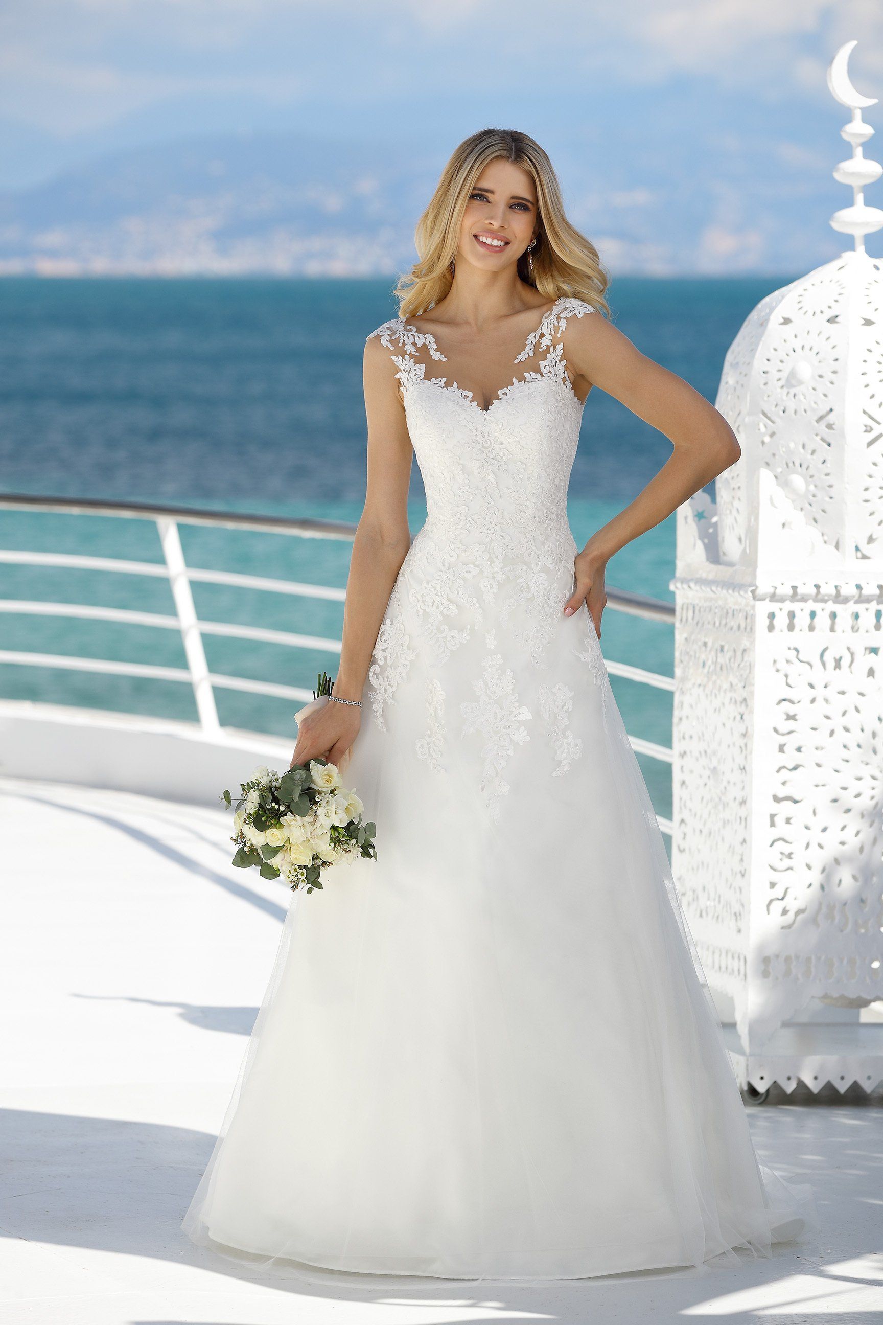Die klassische Form eines Brautkleides mit eng anliegendem Oberteil und einem ausgestellten Rock. Wirkt feminin und betont die Weiblichkeit. Unterschiedliche Ausschnittformen, verschiedene Applikationen und Stoffe unterstreichen die Vielseitigkeit der A-Linie. Die Passform, die jede Braut kleidet. Perfekt für jeden Figurtyp.